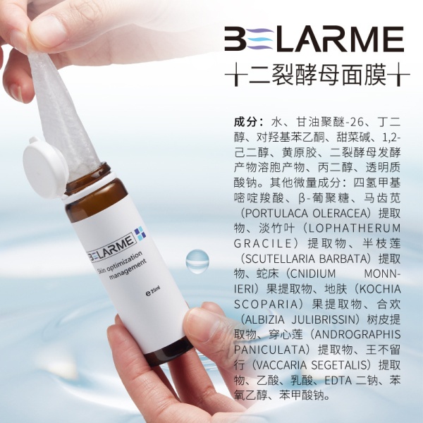 商品属性 [产品名称] BELARME二裂酵母舒润面膜 [产地] 广州 [保质期] 3年 [化妆品功效] 补水保湿,提亮肤色,晒后修护,滋润,舒缓肌肤 [品牌类型] 国货品牌 [是否跨境出口专供货源] 否 [是否进口] 否 [特殊用途化妆品] 否 [生产许可证号] 粤妆20190078 [适用人群] 女士 [适用肤质] 中性,通用,油性,干性,敏感性 [非特化妆品备案证号] 粤G妆网备字2023336286
