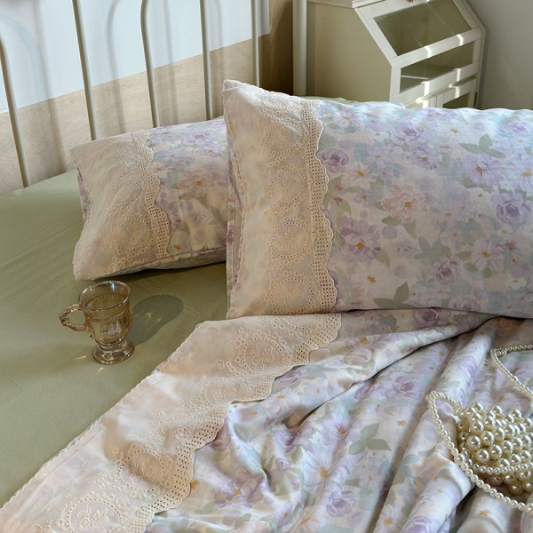 商品属性 [克重] 800g(含)~1000g(不含) [加工定制] 否 [印染工艺] 活性印染 [图案] 植物花卉 [是否一般纳税人] 否 [材质] 纯棉 [款式] 床单式 [织造工艺] 花边 [面料支数] 其他 [风格] 法式