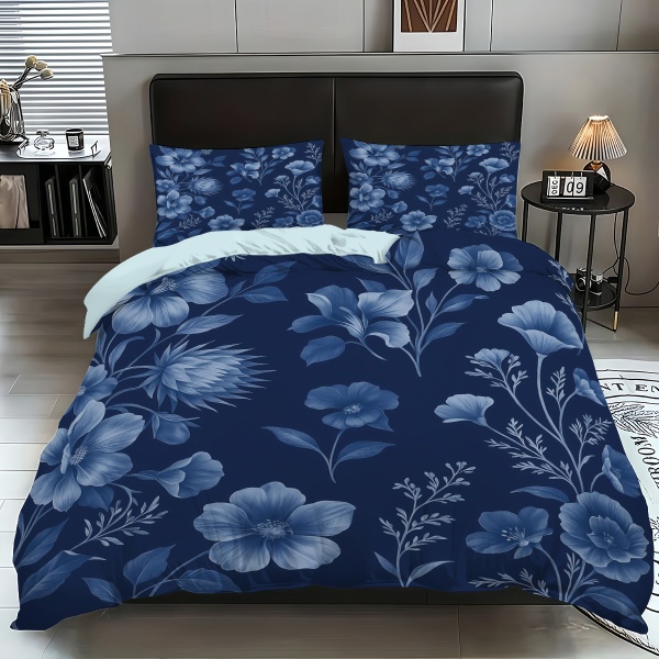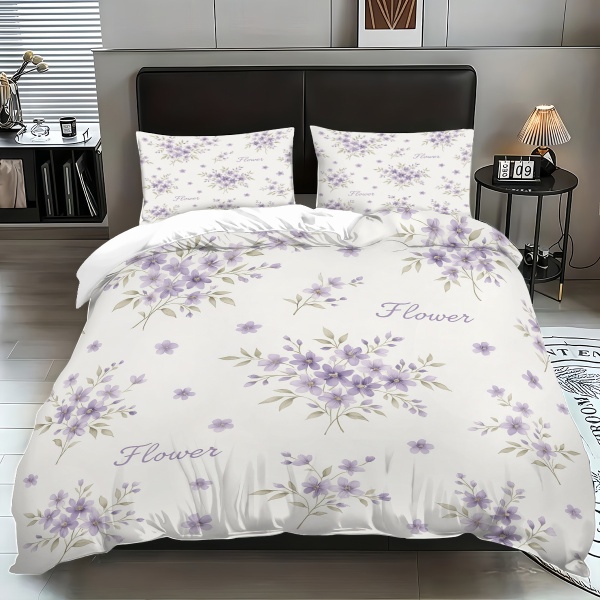 跨境花卉被套简约小清新印花三件套磨毛枕套被罩外贸家居床品批发