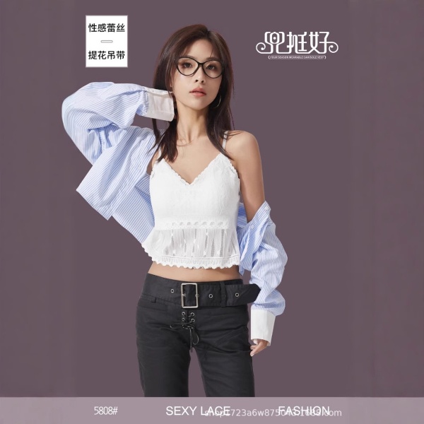 商品属性 [上市年份/季节] 2025年春季 [主面料成分] 锦纶 [主面料成分2] 氨纶 [主面料成分2含量] 30%(含)-50%(不含) [主面料成分含量] 50%(含)-70%(不含) [图案] 植物花卉 [弹力] 微弹 [是否跨境货源] 否 [款式] 肩带款 [流行元素] 流苏 [版型] 修身型 [肩带样式] 不可拆卸 [衣长] 短款(40cm<衣长≤50cm) [面料名称] 锦纶 [风格] 公主风 [风格类型] 清新甜美