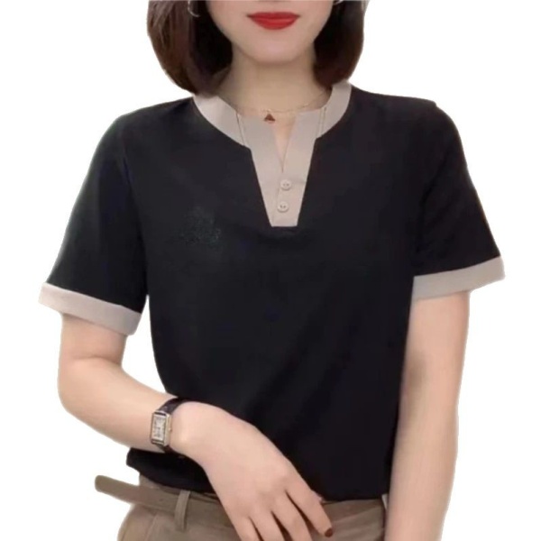商品属性 [上市年份/季节] 2025年春季 [主面料成分] 涤纶(聚酯纤维) [主面料成分2] 涤纶(聚酯纤维) [主面料成分2含量] 30%(含)-50%(不含) [主面料成分含量] 90%(含)-95%(不含) [图案] 拼色,纯色 [工艺] 刺绣/绣花 [是否跨境货源] 否 [款式] 套头 [流行元素] 拼接 [版型] 常规 [衣长] 普通款(50cm<衣长≤65cm) [袖型] 常规 [袖长] 短袖 [面料名称] 涤纶 [领型] 圆领 [风格] 通勤风 [风格类型] 气质通勤